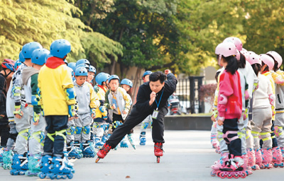 近日,輪滑教練在江蘇省宿遷市泗洪育才實(shí)驗(yàn)學(xué)校向?qū)W生展示動(dòng)作要領(lǐng)。該校開設(shè)了“炫酷輪滑”特色體育鍛煉項(xiàng)目,定期邀請專業(yè)教練指導(dǎo)學(xué)生練習(xí),促進(jìn)學(xué)生身心全面發(fā)展。