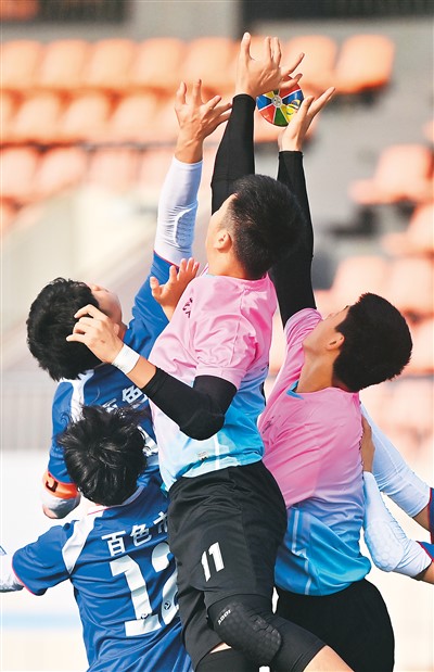 近日,“三月三”廣西花炮邀請賽在廣西壯族自治區(qū)柳州市開賽,圖為參賽選手在比賽中爭搶花炮。