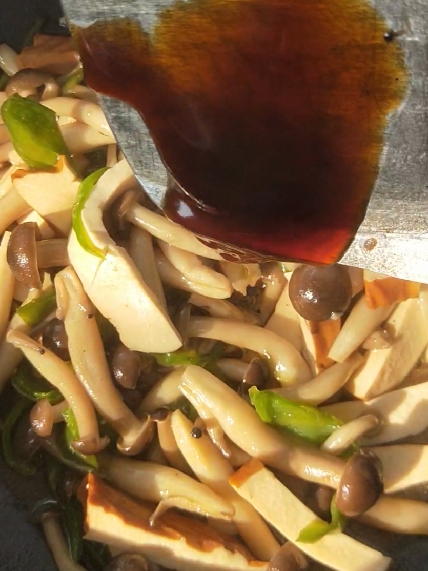 放入切好的香干,加一勺鹽,少許水,一勺生抽,燜煮1分鐘左右